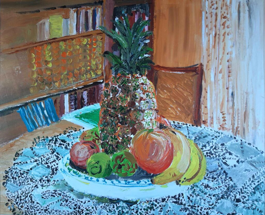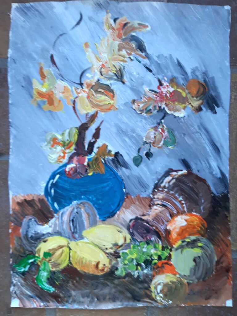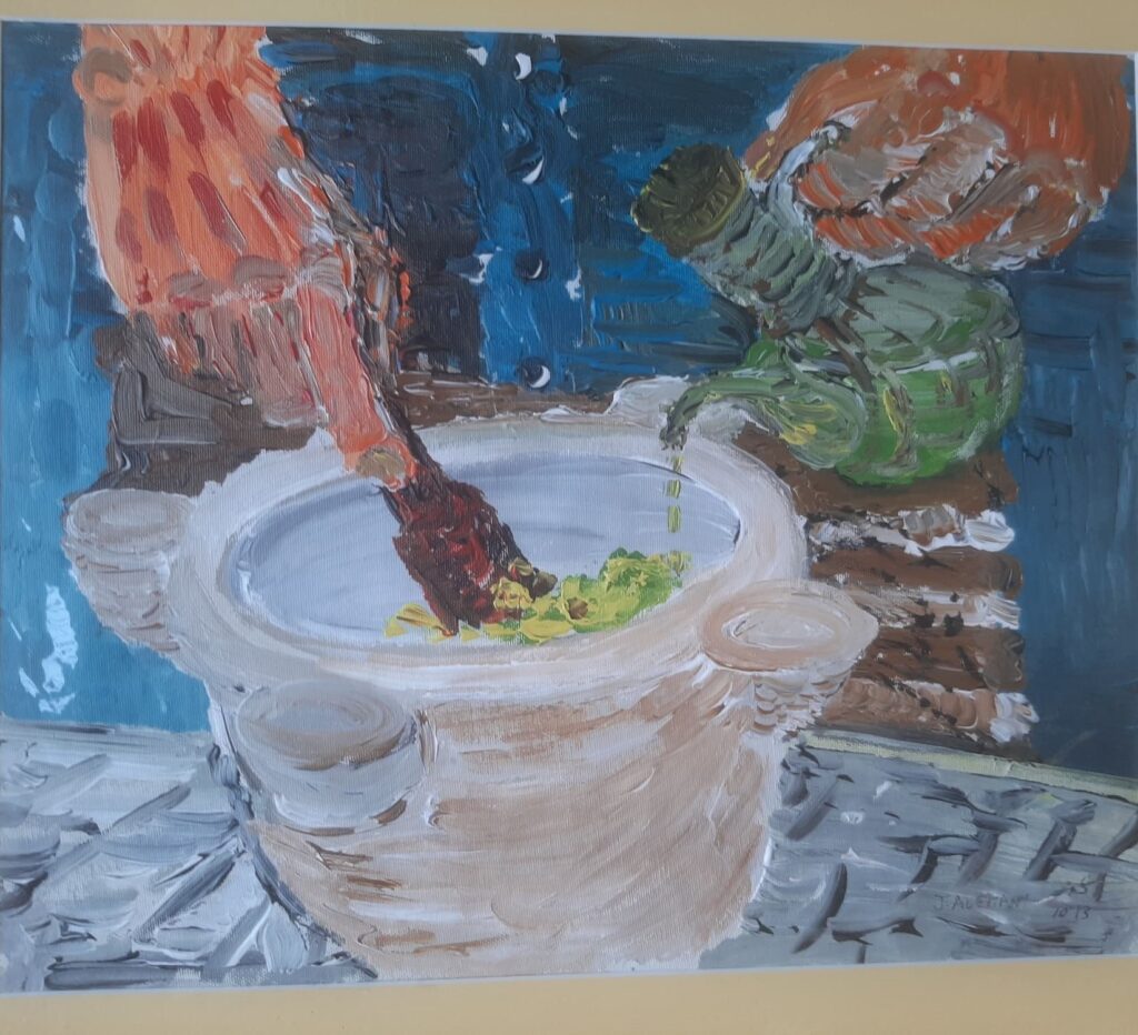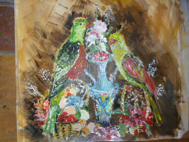 Insereixo a les obres fons de colors suaus i bellugo el pinzell en diferents direccions.